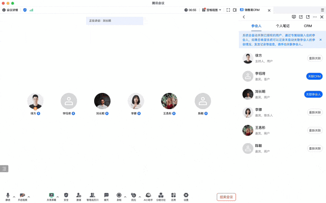 面对客户的重重提问,小会同学开始在脑中疯狂回想,尴尬地请客户稍等,并在CRM中搜索历史拜访该客户的活动记录和客户工单......一场会结束,又是一身冷汗,怎么办?现在,就简单多了!可以在腾讯会议侧边栏中看到通过专属链接入会的客户标识,临时入会的新嘉宾也能一键关联CRM,以便销售快速了解到谁参会了谁没参会、谁表达了支持谁表现出犹豫......